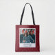 Carry holiday cheer wherever you go with this customisable tote bag featuring a modern design of Christmas trees and festive greetings on a vibrant crimson red background. Personalise it with your own photo and custom text to make it uniquely yours. Perfect for holiday shopping, gift-giving, or everyday use, this tote bag blends style and functionality with a personal touch, making it an ideal accessory for the festive season. For assistance with the design or matching products, please email me at miriam@miriamthiel.com.