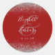 Modern Crimson Red Silver Glitter Edge Wedding Classic Round Sticker