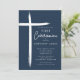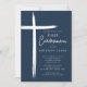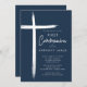 This modern blue First Communion invitation features a stylish cross design, perfect for celebrating this special religious milestone. The navy blue colour scheme makes it ideal for a young boy's First Communion ceremony. The simple yet sophisticated design is sure to impress guests and set the tone for a memorable event.