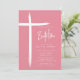 This modern pink Baptism invitation features a stylish cross design, perfect for celebrating this special religious milestone. The blush pink colour scheme adds a touch of femininity and grace to the invitation, making it ideal for a young girl's Baptism ceremony. The simple yet sophisticated design is sure to impress guests and set the tone for a memorable event.