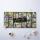 This personalized modern photo desk mat makes a great gift for the holidays. It features 14 custom photos, with the word “family” in elegant handwritten calligraphy script. The black background can be changed to your own custom color.