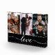 Personalise this photo block with 3 photos. Choose favourite photos of the family, the kids, parents, wife, husband, wedding photos, pets (dogs, cats, fish etc.). Black bar at the bottom with a modern "Love" Script type.