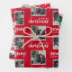 Modern Custom 4 Photo Pet Dog Holiday Red Wrapping Paper Sheet