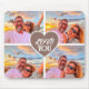 This cute mouse pad features a template for 4 of your very favourite photos, for a truly unlimited memorable combination. This picture template includes a blown heart in the middle of the collage. This item would make a truly wonderful gift.