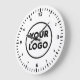 Replace the sample company logo with your own in the sidebar to create a modern wall clock for your business with a white background. Your logo can be in colour or black and white. Bold black numbers with minute marks around the edge make it easy to tell the time. Click to customise further if you need to adjust the size of your logo with the scale buttons.