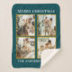 Modern Custom Christmas Family Photo Collage Teal Sherpa Blanket