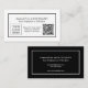 Simply modern black and white business card featuring your company logo, business information and website QR code with an elegant border. A coordinating black and white background is on the back of the card. Tip: You can customise it further to change the black and white colours to your brand colours.