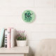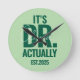 Modern Custom Dr. Name Date Dark Green Button Round Clock