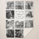 A beautiful, modern gift for anyone in your family: A trendy Instagram photo collage sherpa blanket in black and white with your personal family name and year established for that special keepsake packed with years of memories. The background colour is customisable under "customise further".