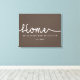 Minimal HOME wall art on brown canvas print. Make a great unique entryway piece. Simply add your home's GPS coordinates and established date using the easy personalise button. You can find your coordinates by visiting https://www.gps-latitude-longitude.com/ Makes a great housewarming gift for new homeowners.