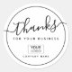 Elegant business thank you stickers with a thin border and your custom logo. Customisable text: "Thanks for your business" with your company name/URL below and logo below. All colours are customisable. Move and resize the logo with the design tool.