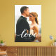 Celebrate your love story with this modern wrapped canvas wedding photo print, featuring your favourite wedding portrait, your names, and wedding date in elegant script. The flowing "love" calligraphy overlay adds a romantic touch, creating a timeless keepsake for your home. Perfect as a wedding gift, anniversary decor, or bridal shower present, this custom canvas blends sentiment with style. A stunning way to showcase your happiest moment and cherish it forever.