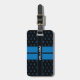 This stylish personalised luggage tag includes both your name and your initial letter in a monogram pattern. A blue, black and white design with classic double racing stripes on the front and your contact details on the back. A great gift for friends and family for birthdays, holidays, father's days or a gift for yourself!