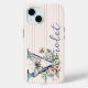 Modern Custom Name Floral Butterfly Initial Navy Case-Mate iPhone Case