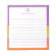Modern Custom Name Monogram Student To Do List Notepad. modern elegant school student to do list sticky notes with colourful stripes in purple, pink, ornage, yellow and neon green.