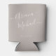 Modern Custom Neutral Script Names Wedding Can Cooler
