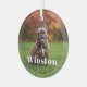 Modern Custom Name Photo Holiday glass ornament with your pet’s name in a bold white serif font.
