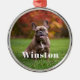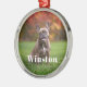 Modern Custom Name Photo Holiday metal ornament with your pet’s name in a bold white serif font.