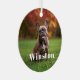 Modern Custom Name Photo Holiday metal ornament with your pet’s name in a bold white serif font.
