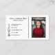 Classic and modern photo business card. The front has just the owners name in a black script font on a white band on a blush background. The back has the essentials on the left side like; name, Company or title, street address, phone, e-mail, mobile and webside. On the right is your own Custom photo, easy to change to yours. Present yourself with e Portrait photo for a personal touch.