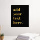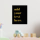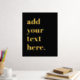 Modern black poster print with your custom text in real gold or silver foil bold trendy typography. You can change the size of your text and the background colour by editing in the design tool.