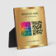 Upload Your Business Company Logo Here Custom QR Code Add Text Modern Elegant Custom Template 5.25 x 5.25 Square Glamour Faux Gold Tabletop Plaque with Easel.