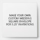 Make your own custom modern square envelope for 5.25" wedding invitations. Click the button to edit the design to customise them completely by adding an address on the front, and a return address on the back, changing the fonts, colours, placement, or even adding a photo inside.