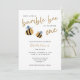 Invite your friends and loved ones with this modern and cute first birthday invitation in bumble bee theme design.