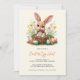 Invite friends and family to a fun Easter Egg Hunt with this adorable invitation featuring a cute bunny holding a basket filled with colourful Easter eggs, carrots, and spring flowers. Perfect for Easter celebrations, this beautifully designed card highlights a cheerful springtime aesthetic. Personalise it with your event details such as date, time, location, and RSVP information. Great for family gatherings, community brunches, or Easter parties.