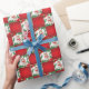 Modern Cute cat Santa Xmas Holly chequered Pattern Wrapping Paper