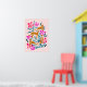 Modern abstract cute jungle animal with tropical flowers and palm leaves. Warm colours, pink background. It is great for kids room decor.