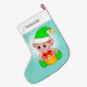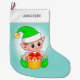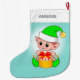 Modern cute Christmas elf on light blue Large Christmas Stocking