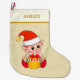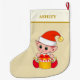 Modern cute Christmas elf on sand beige Large Christmas Stocking