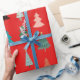 Modern cute Christmas pattern red green trees chic wrapping paper.
