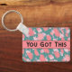 Get a little motivation with this inspirational quote keychain. "Win The Day" on the front and 'You Got This' on back in black vintage modern font that has a bit of a Gatsby vibe. But you can also change the text out for a different quick reminders or name or something else if you prefer. The brushstroke pattern features a mix of calming yet vibrant hues with blush pink, flamingo pink, turquoise, and a tiny subtle hint of purple. Contrasting with black stroke and font. Motivational Colourful Brushstrokes Inspirational keychain