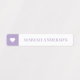 Simple and cute colour coded kids name labels featuring two children's names in a modern font, pink and purple heart theme set against a white background. These waterproof adhesive labels are perfect for back to school to label the kids belongings such as water bottles, lunch boxes, backpacks, shoes, clothing, toys and books! Simple to customise by adding your two children's names.