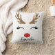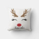 This chic, trendy, and modern holiday throw pillow features a cute smiley reindeer face on a simple white background.