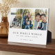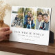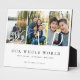 Celebrate dad with this elegant Modern Dad Photo Collage Father's Day keepsake Gift Plaque, designed to beautifully showcase 3 cherished memories in a modern, elegant, and meaningful way. Featuring a minimal and elegant photo collage layout with space for 3 photos, this design keeps the focus on your most heartfelt moments while maintaining a clean, stylish aesthetic. The word "DAD" is displayed over the photos in refined typography, with the first letter of Dad presented in elegant calligraphy and heart design and paired with a sophisticated serif font for a timeless, The phrase “our whole world” can be personalized along with family members' names and family last name. Thoughtfully designed with a photo-focused collage layout and heartfelt message, this plaque is a perfect keepsake to honor and celebrate any dad on Father’s Day, birthday, as well as first Father's Day, and new dads. Personalize it with heartfelft message to create a meaningful gift that will be treasured for years to come. Original design and layout by Moodthology Papery.