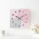 Modern Dahlia flowers pink and grey grey Square Wall Clock