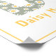 Cute print for nursery or kid's room features monogram letter D in a fun white daisies on gray background print with customizable sunny yellow text and a thin border frame.