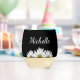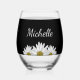 Modern rustic floral stemless wine glass, with a white daisies design on a black background. With white customisable script typography lettering you can add your own name. Great for adding a botanical style to your entertaining.