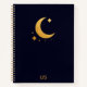 Modern Dark Blue Gold Foil Moon Stars Monogram Notebook