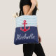 Modern Dark Blue Nautical Design Red Anchor Tote Bag