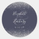 Modern Dark Blue Silver Glitter Edge Wedding Classic Round Sticker
