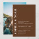 This invitation features a chic dark brown background with a minimalistic design. The names of the couple are highlighted in bold, elegant typography, adding a touch of modern elegance to the invitation. Add your photo on the back.