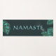 A dark emerald green background with large monstera leaves is the canvas of this elegant, modern, and tropical Yoga Mat. This minimal design features the word Namaste and your name. You can change the fonts, font colour, and font sizes to your liking. Your asanas will look awesome on this mat!