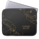 Modern Dark-Gold Geometric Pattern & Custom Name Laptop Sleeve