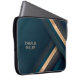 Modern Dark Green Lines Background & Custom Name Laptop Sleeve
