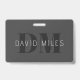 Modern Dark Grey & Black Editable Name & Monogram ID Badge