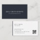 Custom-designed business cards featuring modern minimalist design with personalised business info and QR code.
